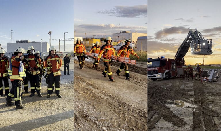 Unter der Übungsleitung des Fach-Kreisbrandinspektors Andres Pichl und Kreisbrandmeister Hubert Ammer haben sich die rund 80 Übungsteilnehmerinnen und -teilnehmer in verschiedene Gruppen aufteilt. Während sich eine Gruppe um den Aufbau der Wasserversorgung zur Brandbekämpfung kümmerte, starteten zwei Gruppe den so genannten „Innenangriff“, um eine vermisste Person im Bereich der Tiefgarage in Sicherheit zu bringen. Der Einsatzdarsteller wurde nach erfolgreicher Bergung gleich vom anwesenden Team des Rettungsdienstes umfassend versorgt.