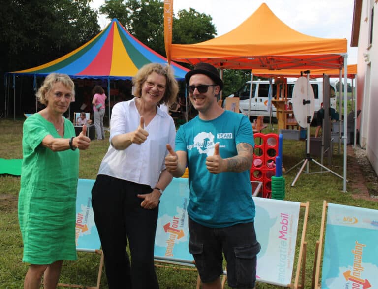 Am Demokratiemobil des Kreisjugendringes Landshut konnten die Jugendlichen in Gesprรคchen mit einer ehrenamtlichen Mitarbeiterin ihre Meinungen und Wรผnsche zur Beteiligung in der Gemeinde รคuรern. Mit der Zeit ergab sich ein umfassendes Stimmungsbild darรผber, was den Jugendlichen in Ihrer Gemeinde gefรคllt und welche Zukunftswรผnsche in Ihnen leben.