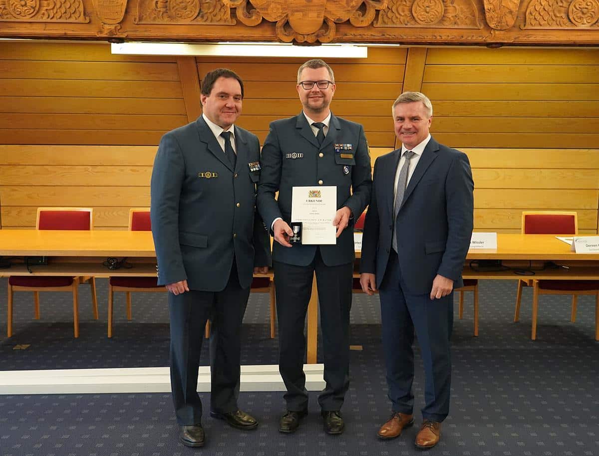 Zusätzlich erhielten zwei langjährige Helfer eine besondere Anerkennung: Fabian Kühn wurde für seine 25-jährige Dienstzeit beim Technischen Hilfswerk (THW) im Ortsverband Ergolding geehrt. Beeindruckende 50 Jahre leistet Georg Straßer bereits ehrenamtlichen Dienst bei den Maltesern in Velden. Zu den ersten Gratulanten gehörten Walter Brams (Ortsbeauftragter des THW Ergolding) und Carl Graf von Soden-Fraunhofen (Ortsbeauftragter der Malteser Velden).